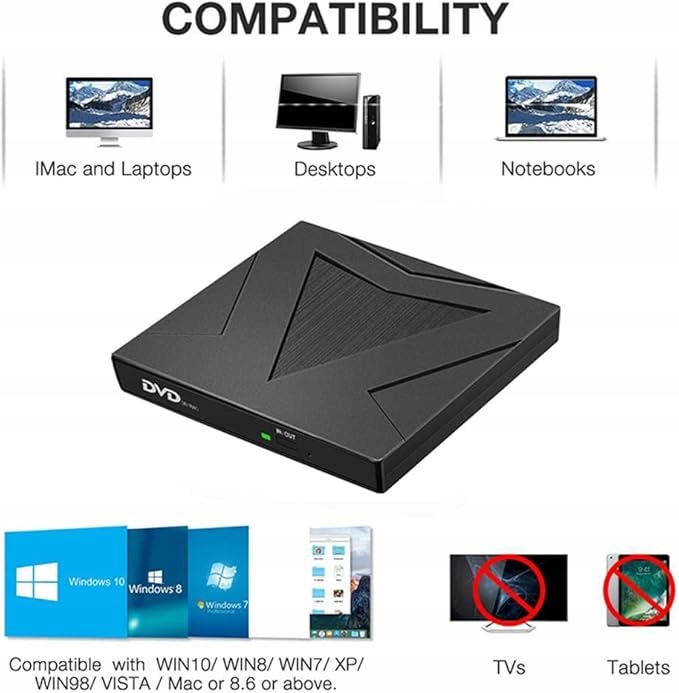 WSPIERA FUNKCJĘ PLUG AND PLAY: Nie wymaga napędu i zewnętrznego. Wystarczy podłączyć go do portu USB, a napęd DVD zostanie wykryty. Dysk DVD USB 3.0 jest idealny do komputerów wewnętrznego napędu.