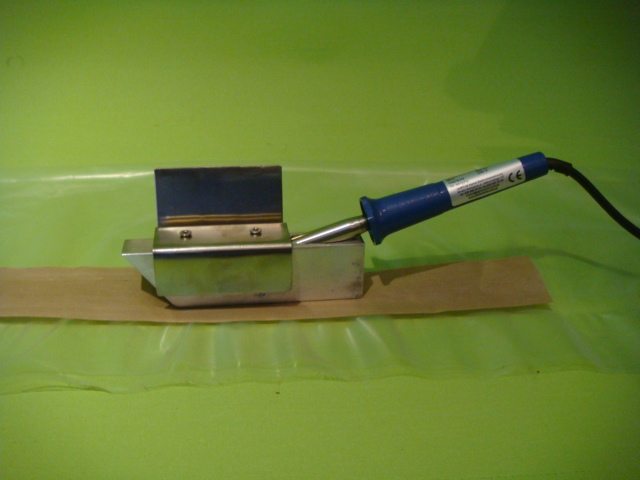 Na folię należy położyć załączony pasek teflonu 2 m x 50 mm i trzymając w ręku zgrzewarkę za rękojeść przesuwać aluminiową płozą . Prędkość jak i docisk należy dobrać doświadczalnie tak żeby jakość zgrzewu była zadowalająca .Po przesunięciu płozą zgrzewarki należy chwilę odczekać i zdjąć pasek teflonu, który jest wielokrotnego użytku. Po zgrzewaniu nagrzaną zgrzewarkę należy oprzeć na podstawce. Odłączyć od zasilania i pozostawić do całkowitego ostudzenia