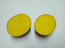 . Miąższ tych ziemniaków jest kremowo-biały.