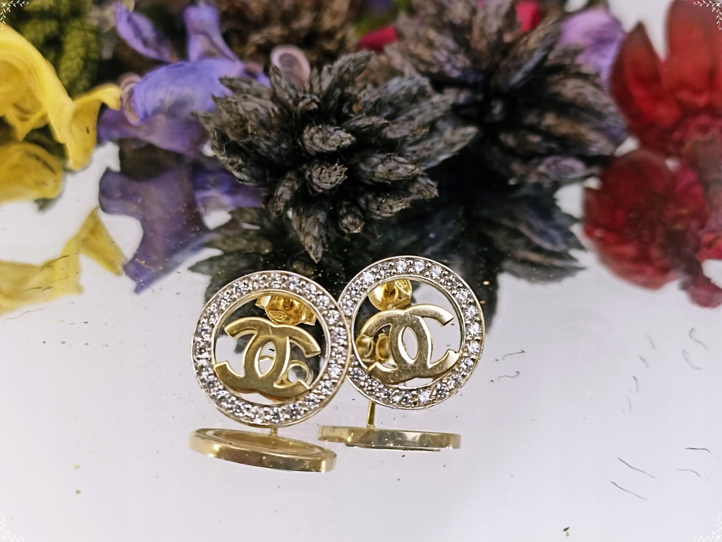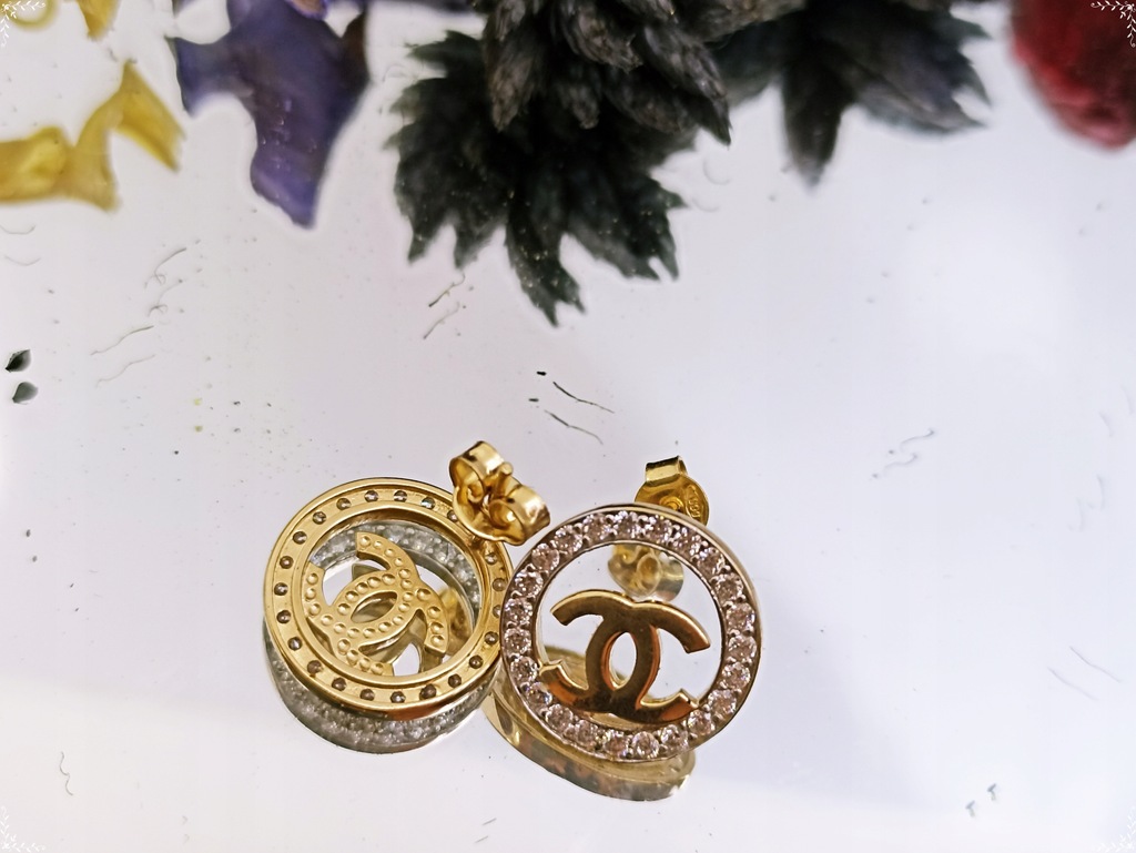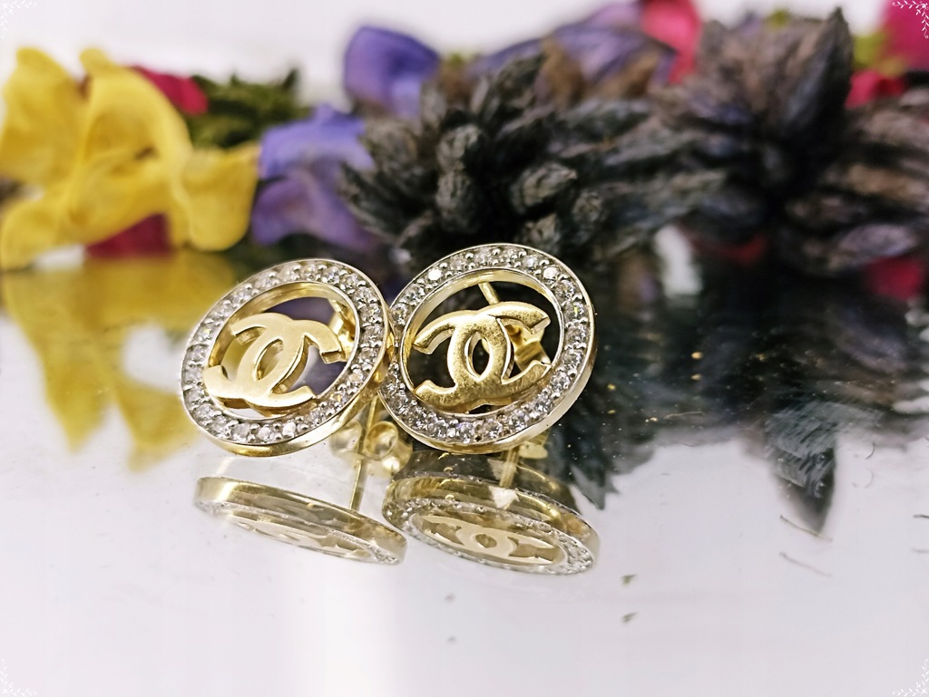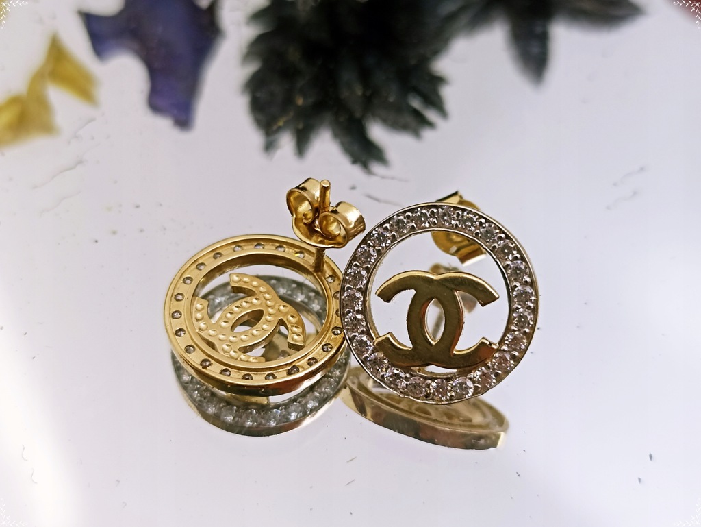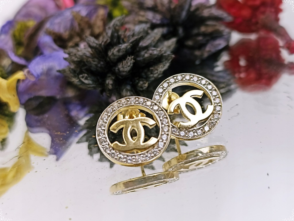 Przedmiotem sprzedaży są: Piękne Złote Kolczyki Chanel 14k