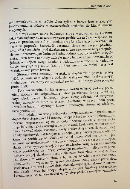 Książka niniejsza zawiera podstawowe wiadomości z dziedziny złotnictwa i probiernictwa. W części dotyczącej złotnictwa omówiono materiałoznawstwo złotnicze i metody obróbki metali szlachetnych, a w części dotyczącej probiernictwa - metody badania i oznaczania metali szlachetnych i ich stopów. Specjalny rozdział poświęcony jest zagadnieniu jubilerstwa. Oprócz licznych ilustracji podane są tabele cech probierczych i sposobów sporządzania stopów metali metali oraz przytoczone teksty dekretów i zarządzeń obowiązujących w zakresie ustawodawstwa probierczego. Książka stanowi praktyczny podręcznik dla złotników i rytowników oraz techników dentystycznych, dla pracowników urzędów probierczych, jak również dla uczniów i amatorów sztuki złotniczej i jubilerskiej. Czwarte wydanie książki świadczy o dużej jej przydatności i potrzebie. Złotnictwo – rzemiosło artystyczne zajmujące się wytwarzaniem wyrobów ze złota, platyny, srebra, stopów, metali szlachetnych, kamieni szlachetnych oraz innych drogocennych materiałów. Termin jubilerstwo, dotyczący głównie czasów nowszych, obejmuje przede wszystkim wyrób klejnotów i ozdób ze złota, srebra i kamieni szlachetnych. W starożytności złotnictwo obejmowało głównie wytwarzanie luksusowych przedmiotów codziennego użytku (świeczniki, srebrne zastawy, szkatułki, wazony, figurki), różnego typu ozdób (diademy, naszyjniki, brosze, klamry, naramienniki, pierścienie), oraz przedmiotów służących kultowi religijnemu (złote lub srebrne relikwiarze, monstrancje, kielichy, puszki, pateny). Od XIII wieku w Europie Zachodniej, a od XIV wieku w Polsce działalność warsztatów złotniczych została ujęta w struktury cechowe, które w późniejszym czasie wprowadziły obowiązek oznaczania wyrobów znakiem złotniczym (puncą).