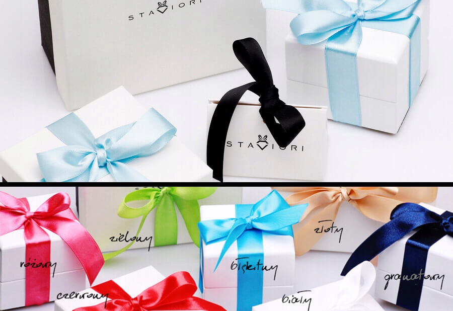 Do każdego opakowania klient otrzymuje specjalną prezentową wstążkę w wybranym przez siebie kolorze.