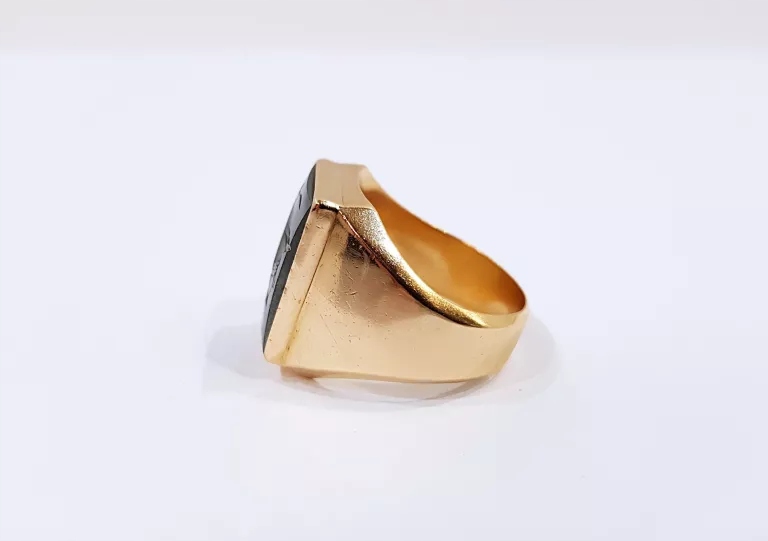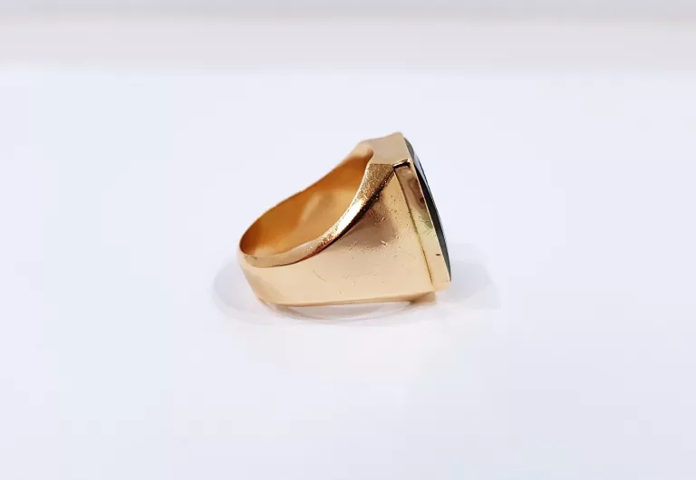 w tej ofercie mamy do zaprezentowania złoty sygnet z hematytem.