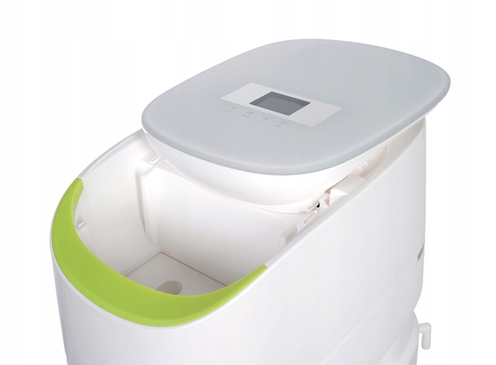 - Czujnik poziomu soli – przypomni Ci, kiedy urządzenie wymaga uzupełnienia soli. Jeżeli stężenie soli spanie poniżej wymaganej wartości, czujnik będzie emitował sygnał dźwiękowy i pojawi się migająca ikona