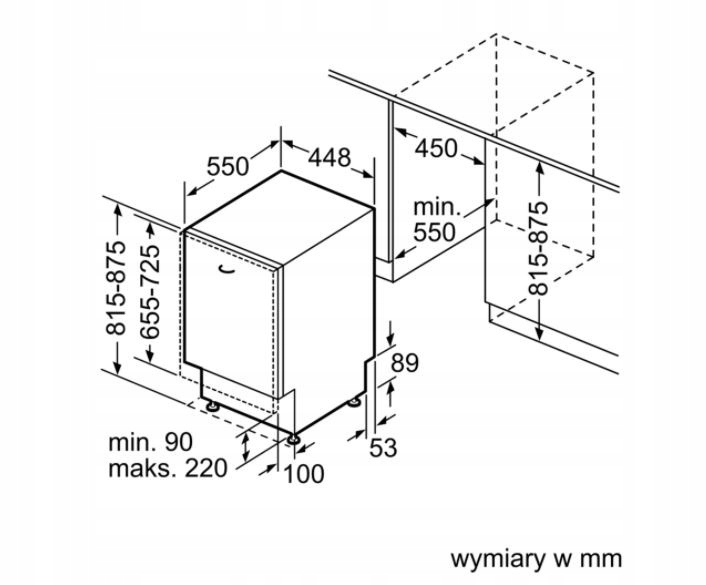 - Minimalna wysokość przedziału instalacji 81,5 cm