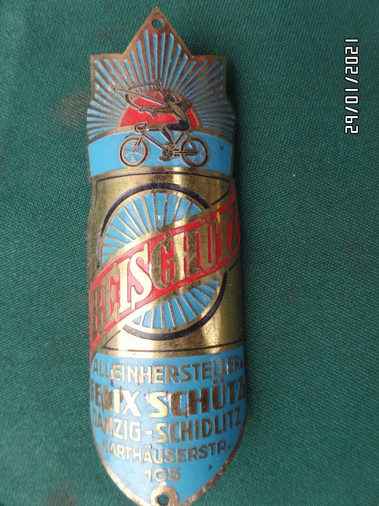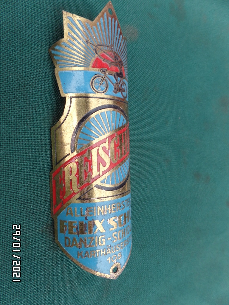 Do sprzedania mam ORYGINALNY zabytkowy przedwojenny szyld rowerowy FREISCHUTZ DANZIG SCHIDLITZ z Gdańska. stan idealny. licytacja trwa do końca więc proszę śmiało licytować. po sprzedaży będę wystawiał jeszcze inne szyldy więc proponuję obserwować moje aukcje. tylko paczka, żadnych listów, żeby nie uszkodzili w transporcie. powodzenia :)