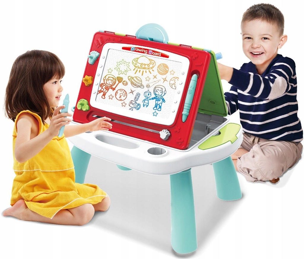 Z drugiej strony tablicy znajduje sięznikopis dzięki czemu dziecko może bawić się na wiele różnych sposobów, ze swoim rodzeństwem lub przyjaciółmi.