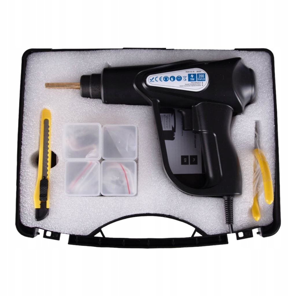Nowoczesna zgrzewarka-zszywarka do plastiku o mocy 70W, wyposażoną w 200 zszywek różnego rodzaju. To narzędzie, które sprawi, że Twoje prace naprawcze czy projektowe będą szybkie, precyzyjne i niezwykle efektywne.