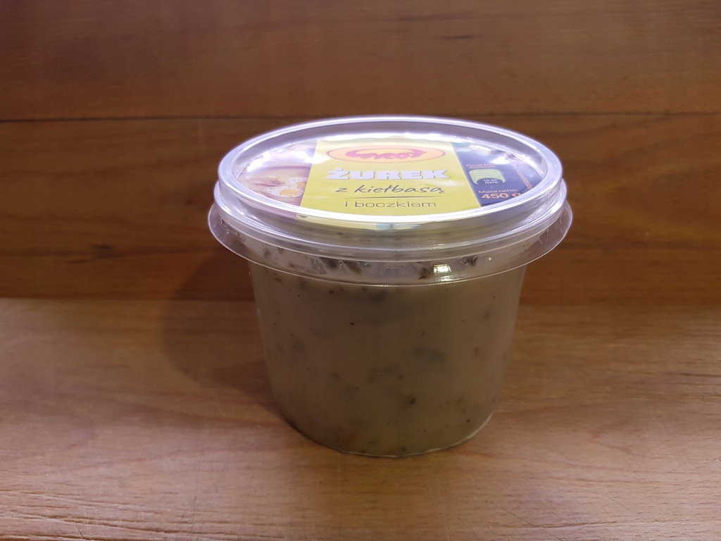 Żurek z białą kiełbasą i boczkiem - wyrób garmażeryjny.